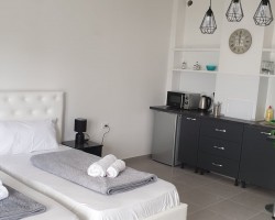 60 m2-es apartman, amely hálórészt, konyhát, tusolóval ellátott fürdőszobát, továbbá tágas teraszt foglal magába.
